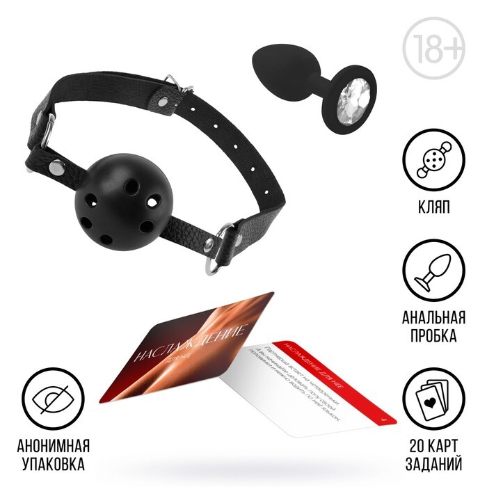 Игра для пар «Во власти страсти», 3 в 1 (20 карт, анальная пробка, кляп), 18+ 7102026