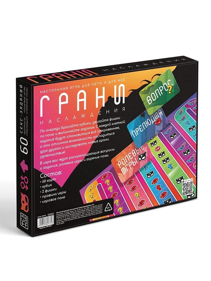 Настольная игра для пар «Грани наслаждения» – это шанс погрузиться в мир новых ощущений, узнать друг друга с иной стороны и открыть скрытые грани вашей близости. Сделайте каждый совместный вечер особенным и наполненным искренним удовольствием!