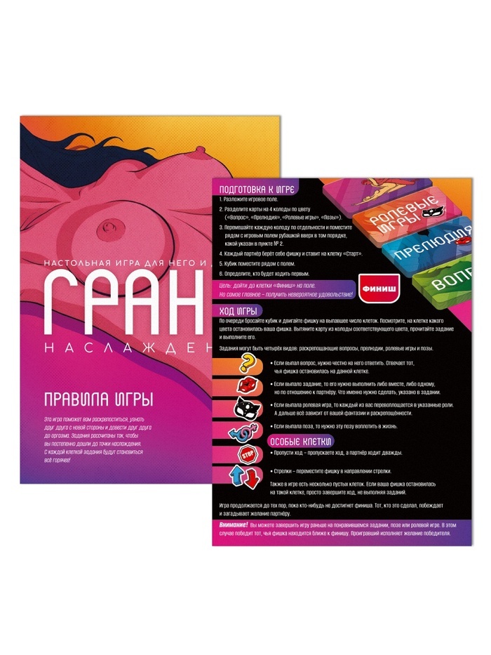 «Грани наслаждения» – это не просто игра, а настоящий путеводитель в мир новых эмоций и впечатлений. Она поможет разнообразить вашу личную жизнь, укрепить взаимное доверие и открыть партнёра с неожиданной стороны.
