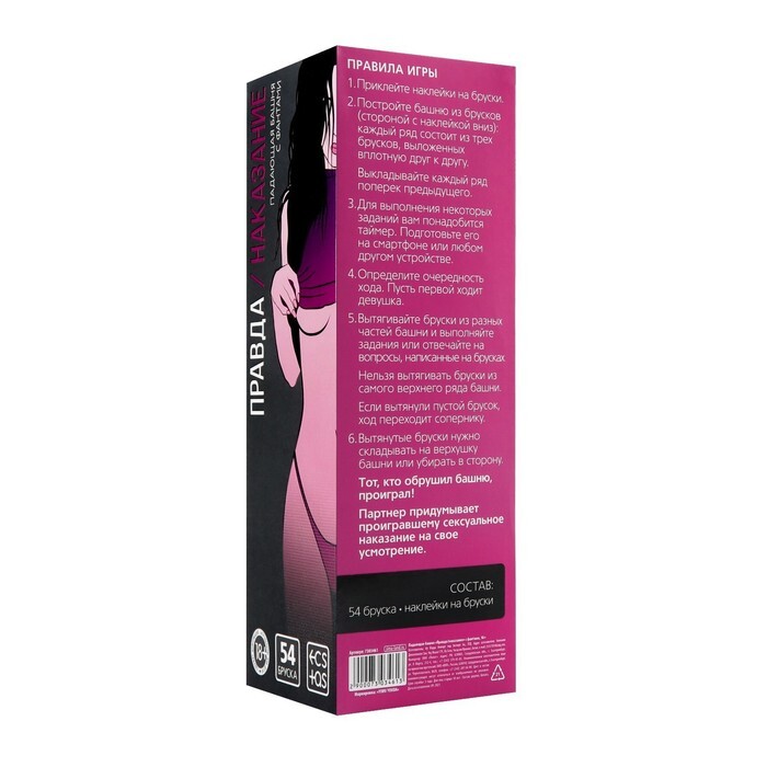 Падающая башня для пар «Правда/наказание», с фантами, 54 бруска, 18+ 7303461