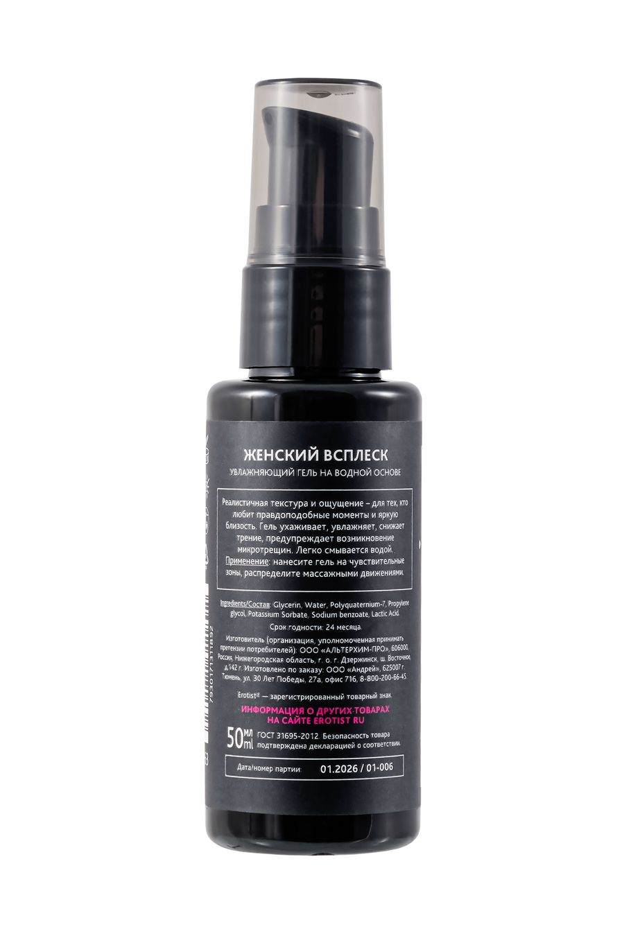 Увлажняющий гель-лубрикант Erotist с имитацией женской смазки на водной основе WOMAN SPLASH, 50 мл 541463